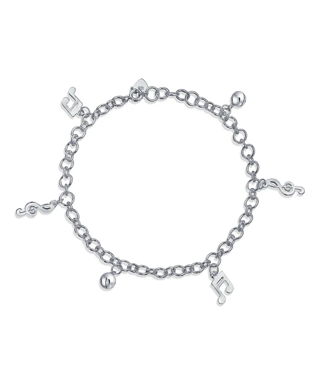 Bling Jewelry Musician Bells Clef Music Notes Charm Anklet Ankle Bracelet .925 Sterling Silver