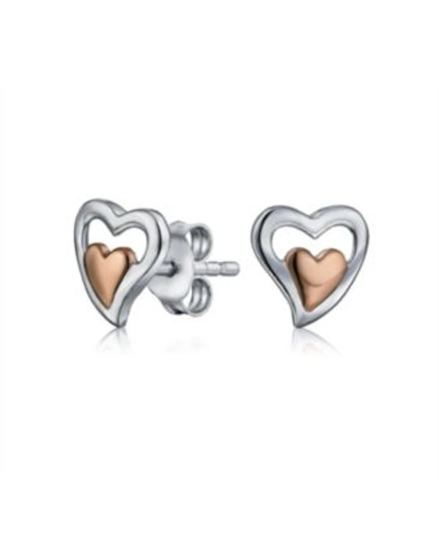 Bling Jewelry Petite Two Toned Double Heart Stud Earrings Rose Gold Sterling Silver Gift