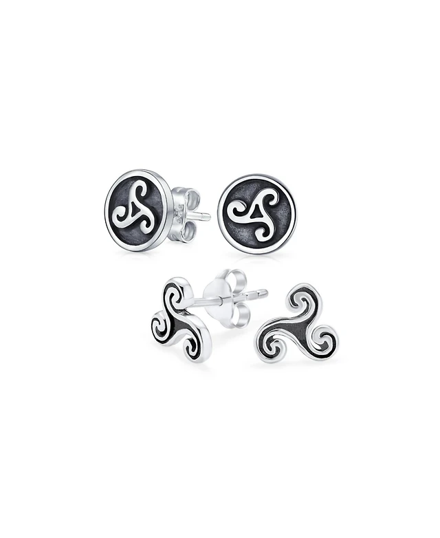 Bling Jewelry Set of 2 Celtic Triskele Spiral Stud Earrings in Oxidized Sterling Silver