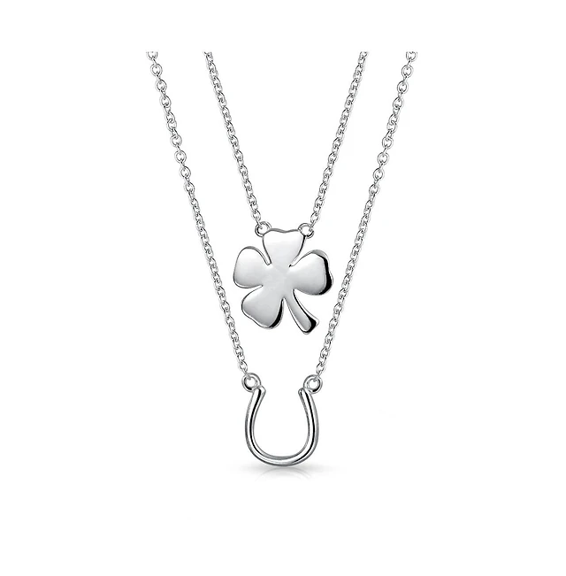 Bling Jewelry Set of 2 Four Lucky Clover and Lucky Horseshoe Pendant Necklace Sterling Silver