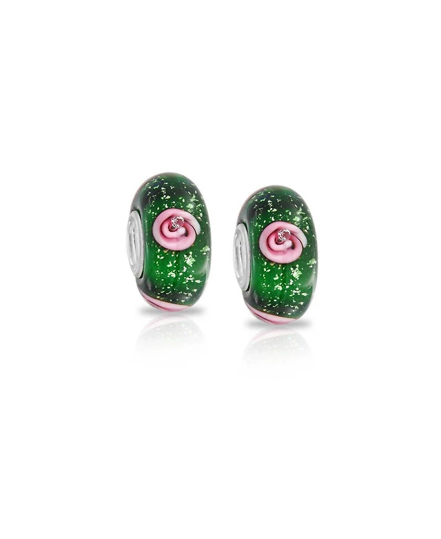 Bling Jewelry Set of 2 Murano Glass Green Pink Blue Aqua Red Ocean Spacer Charm Bead Sterling Silver Core