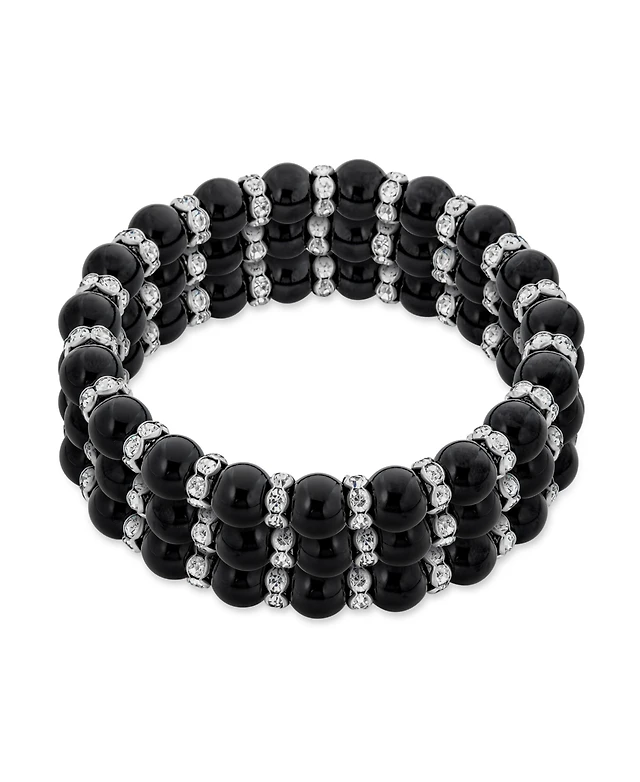 Bling Jewelry Set of 3 Black Simulated Pearl Stretch Bracelets with Crystal Spacers