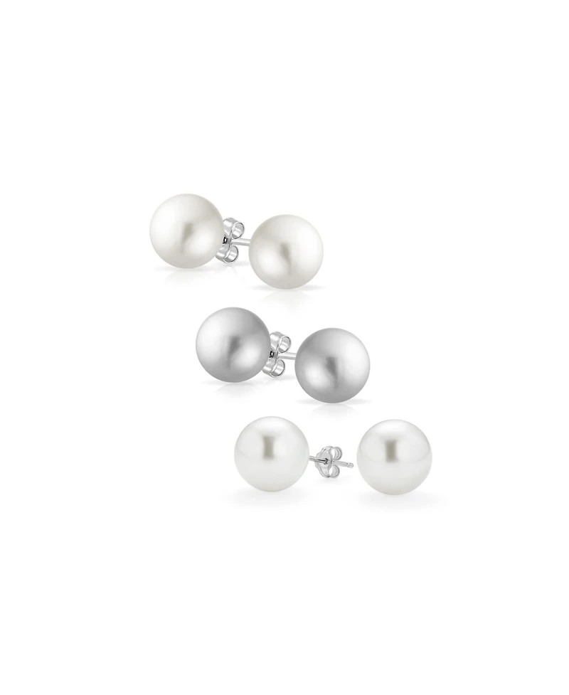 Bling Jewelry Set of 3 Simulated Pearl Ball Stud Earrings 10MM Sterling Silver in Bloomington, MN