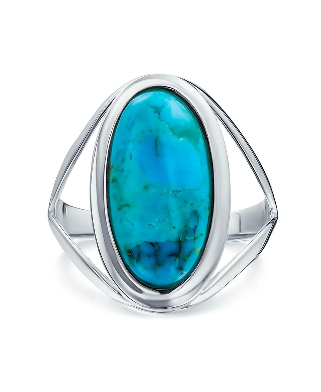 Bling Jewelry Simple Large Dome Oval Cabochon Bezel Set Blue Natural Turquoise Western Statement Ring For Women Split Band .925 Sterling Silver