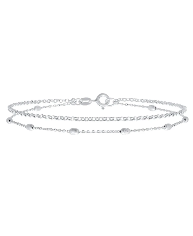 Bling Jewelry Simple Minimalist Alternating Chain Oval .925 Sterling Silver Small Oval Beads Layer Double Chain Anklet Station Ankle Bracelet 9 Inch