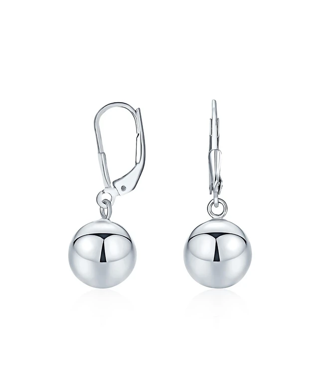 Bling Jewelry Simple Plain Basic Dangling Lever Back Round Bead Ball Drop Earrings .925 Sterling Silver