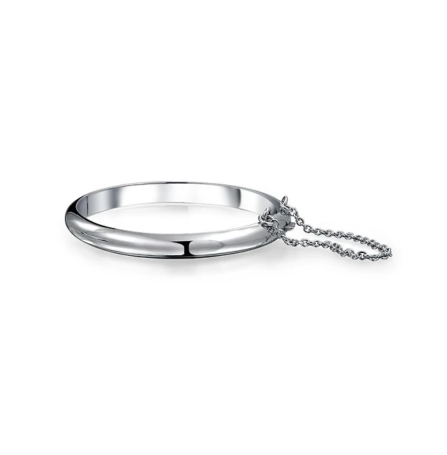 Bling Jewelry Small Wrist 5" Simple Stackable Dome Bangle Cuff Bracelet Sterling Silver Safety Chain