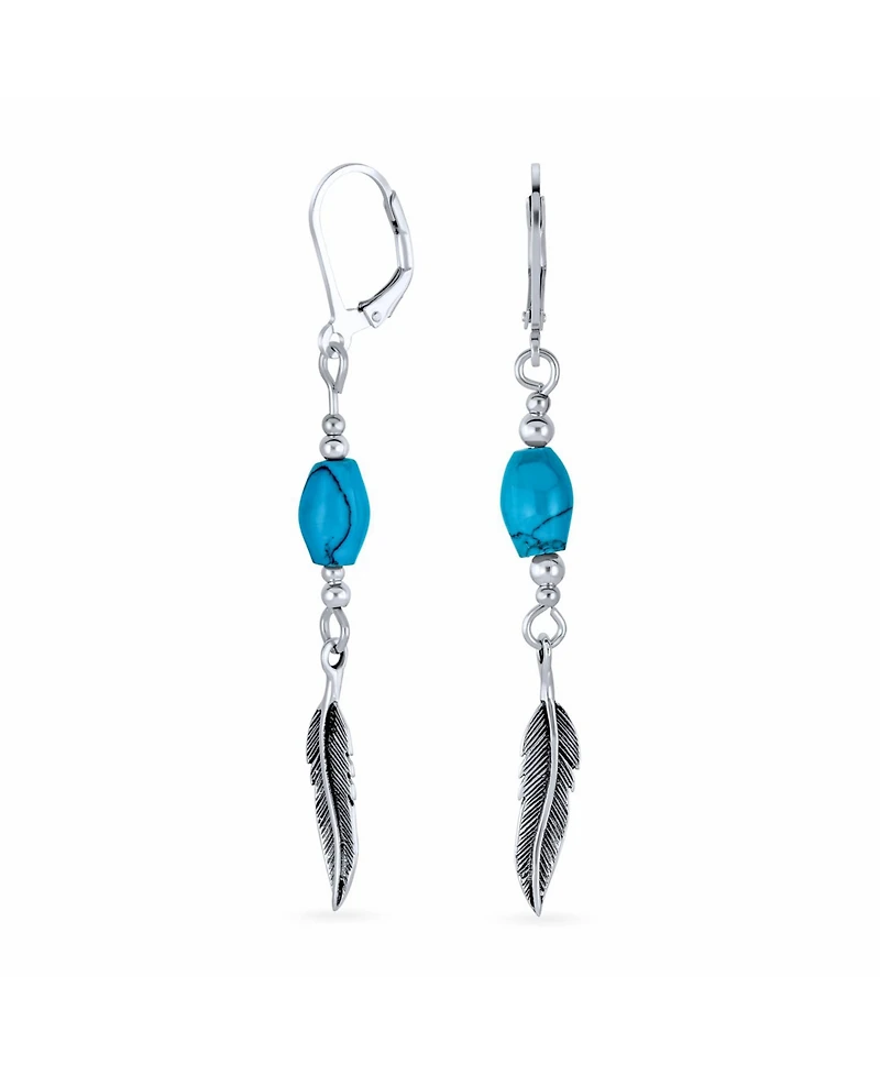 Bling Jewelry Southwestern Style Turquoise Bead & Feather Leaf Dangle Earrings Oxidized sterling Silver Lever back