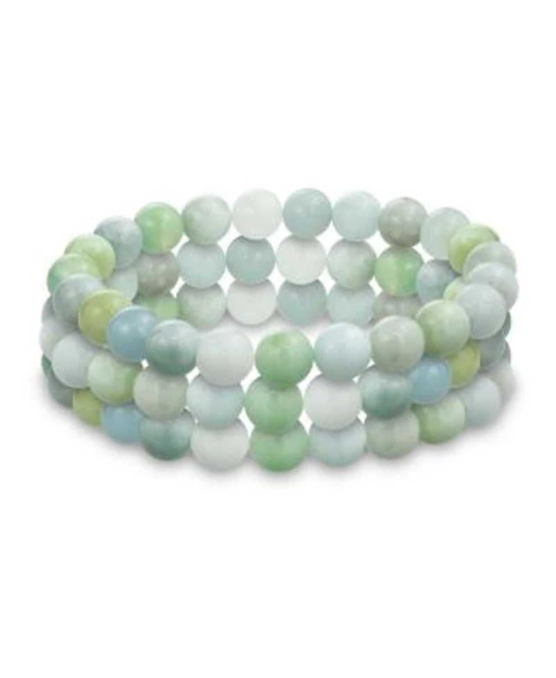Bling Jewelry Stackable Set Of 3 Natural Stone Round Bead 8MM Multi Strand Stretch Bracelet