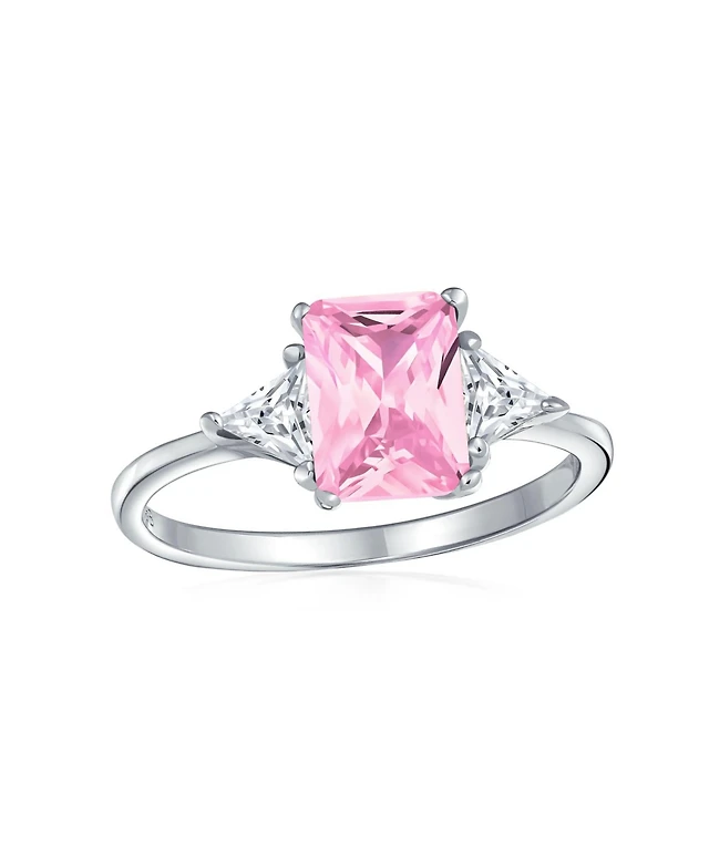 Bling Jewelry Sterling Silver 3CT Pink Princess Cut Cz Promise Ring with Trillion Side Stones
