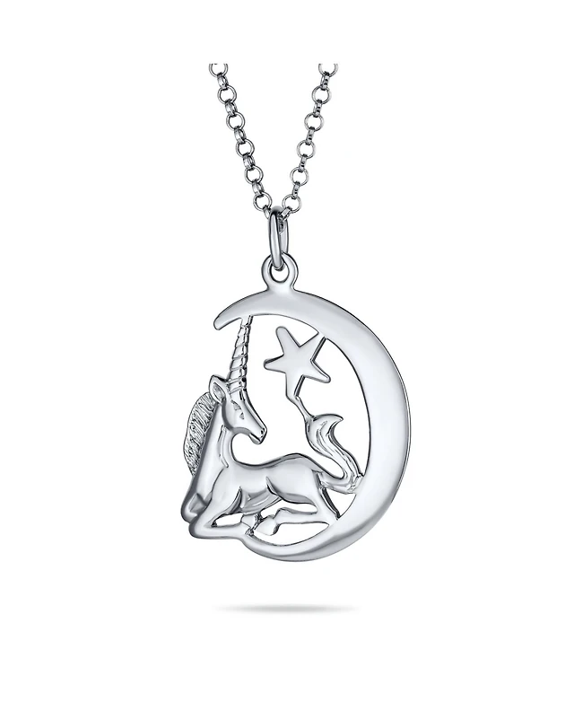 Bling Jewelry Unique Crescent Moon & Star Celestial Pegasus Unicorn Pendant Necklace Sterling Silver