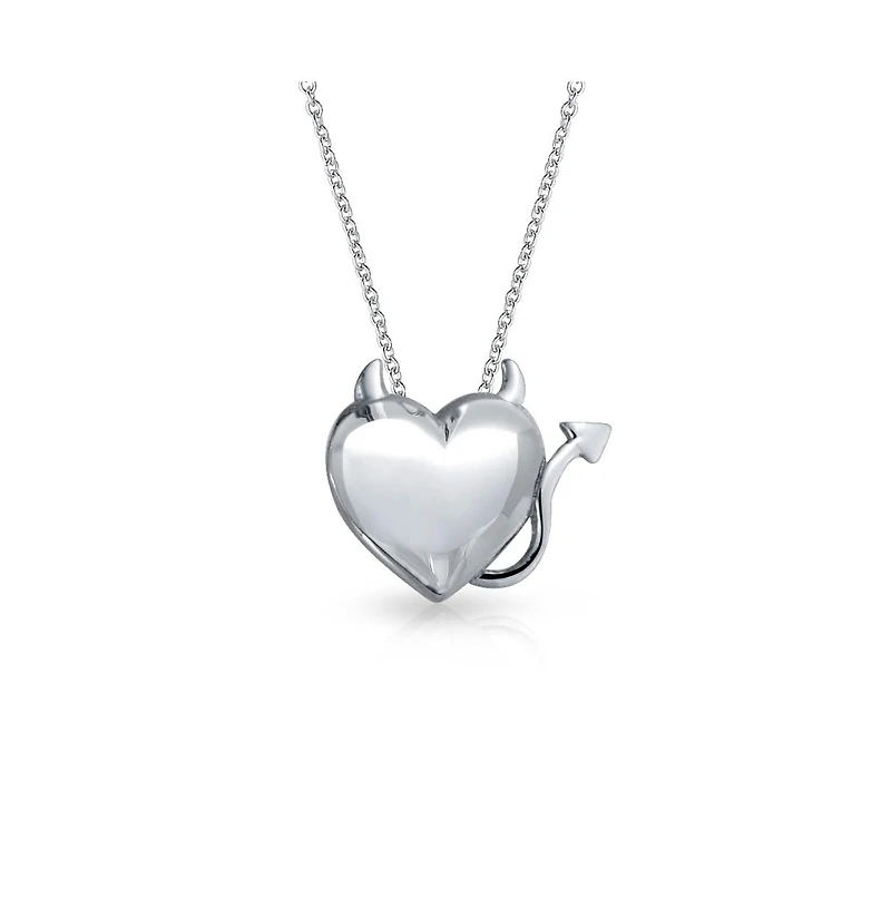 This 0.66in sterling silver devil heart necklace is the perfect mix of mischief and fashion. Give this polished charm to your sweetheart and watch her grin devilishly. This is the perfect hint of naughty, with two horns poking, a tail and a 16in chain.