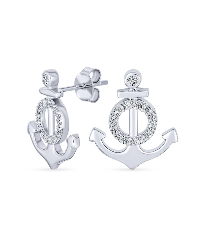 Bling Jewelry Whimsical Nautical Cz Stud Earrings, Boat Anchor Design, Sterling Silver
