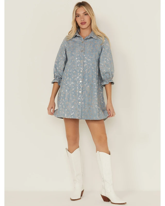 Blue B Women's Denim Sequins Mini Dress