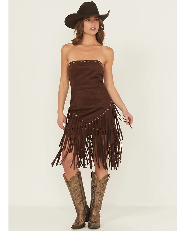 Blue B Women's Fringe Faux Suede Strapless Mini Dress