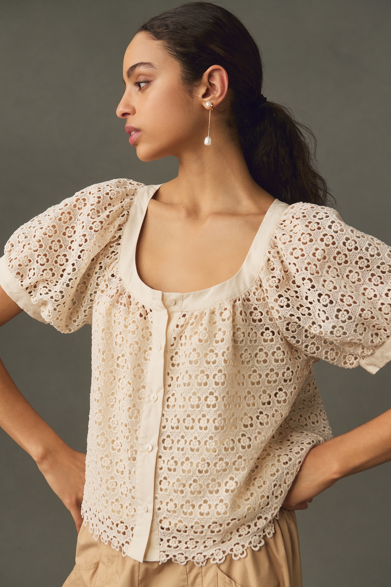 The Lainie Long-Sleeve Lace Cutwork Blouse