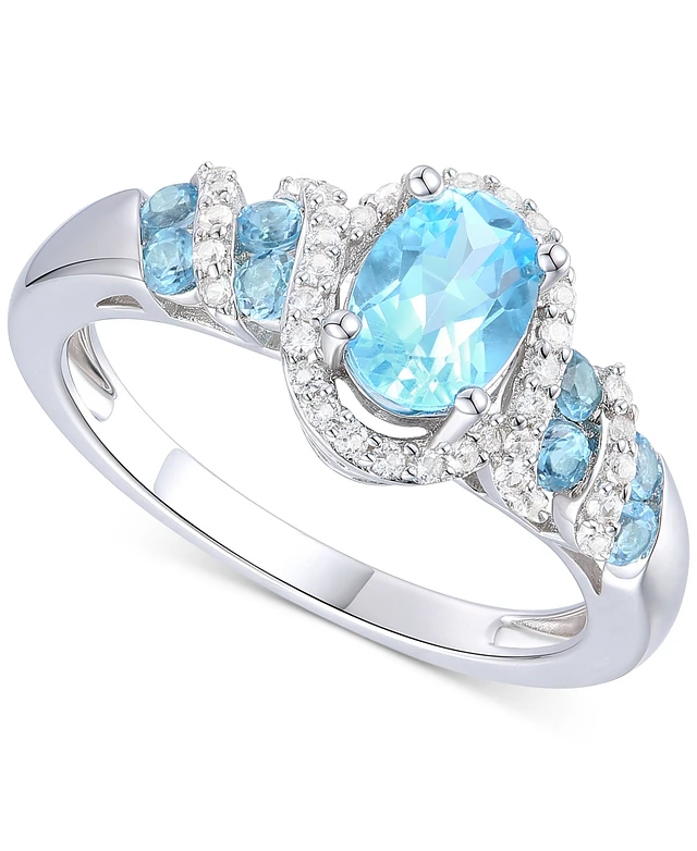 Blue Topaz (1-1/10 ct. t.w.) & Lab Grown White Sapphire (1/4 ct. t.w.) Ring in Sterling Silver