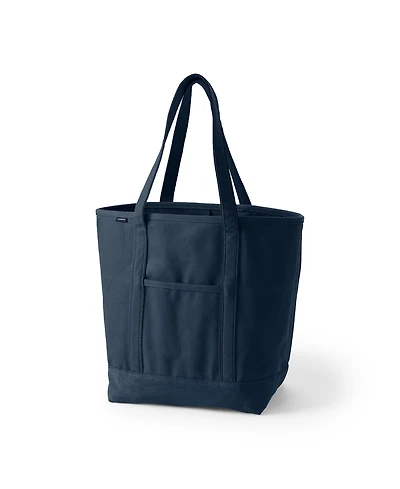 Lands' End Large Solid Canvas Pocket Tote with Open Top and Long Handle