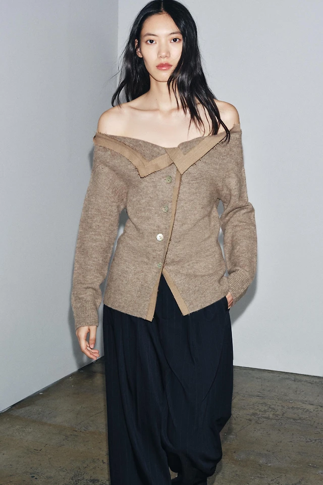 BOAT NECK KNIT CARDIGAN