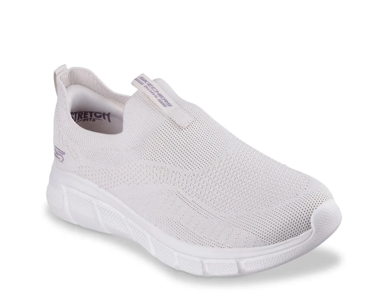 Achieving a sporty style is simple, just slide into the Skechers BOBS B Flex slip-on sneakes! These closure-free kicks are crafted with a Stretch Fit engineered knit upper for a style that is sleek and secure. Finished off with a memory foam insole that delivers cushioning that lasts.
