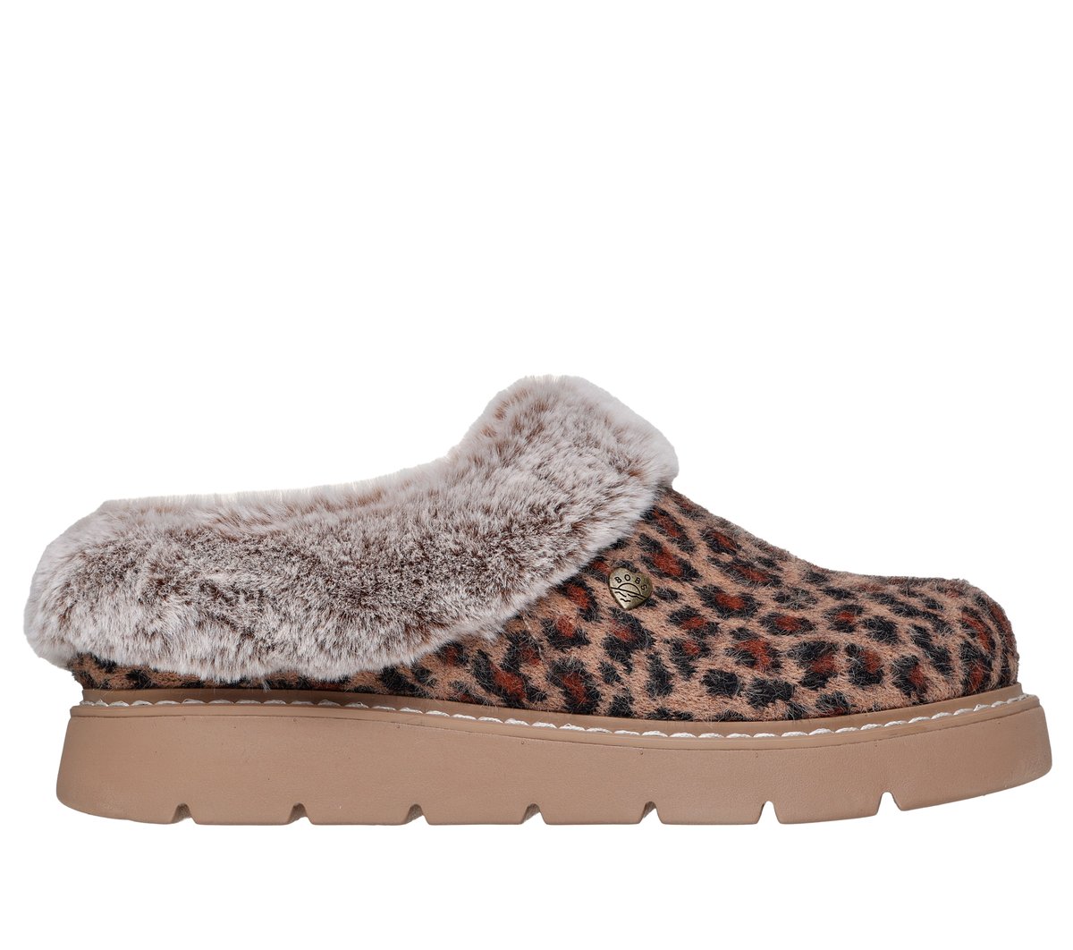 - Leopard print knit upper with faux fur trim and lining