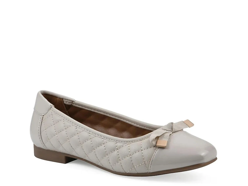 Boost your style quotient with the Bocah ballet flat from White Mountain. Diamond-quilted upper with a square toe and a dainty bow accent offers a contemporary twist to this classic slip-on. With the cushioned footbed, you'll experience unparalleled comfort that lasts all day.