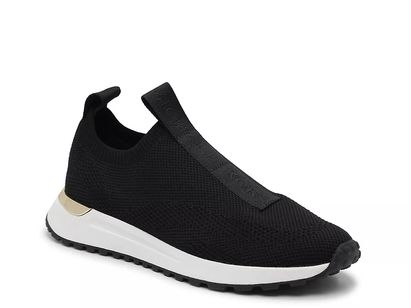 Sporty yet sophisticated, the Bodie slip-on sneaker from Michael Michael Kors adds stylish appeal to any casual look. A gold-toned heel and logo-embellished pull tab keeps this knit pair right on trend.