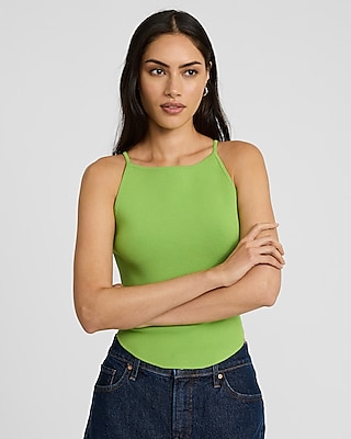 A flattering sweater tank made to smooth, sculpt, and define your figure. This style features a high neckline and a curved hem.
