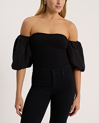 Body Contour Stretch Cotton Off The Shoulder Puff Sleeve Bodysuit in Bloomington, MN