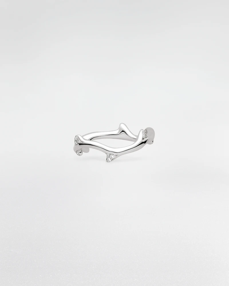 More modern than ever, the Bois de Rose collection pays homage to Christian Dior's favorite flower, the rose, by reinterpreting its stem in a stunning abstraction. Punctuated with golden or diamond thorns, it wraps delicately around the finger, wrist or ear as a symbol of attachment.