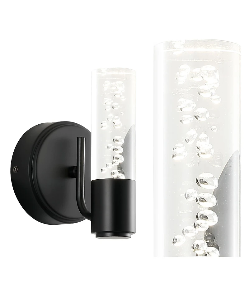Add some sparkle to your modern bath vanity with our Art Deco-inspired contemporary wall light. The brass gold-tone finish accentuates the fixture's clean lines, while clear bubble acrylic cylinder adds unexpected texture to minimalist design. This versatile light is perfect for contemporary spaces.