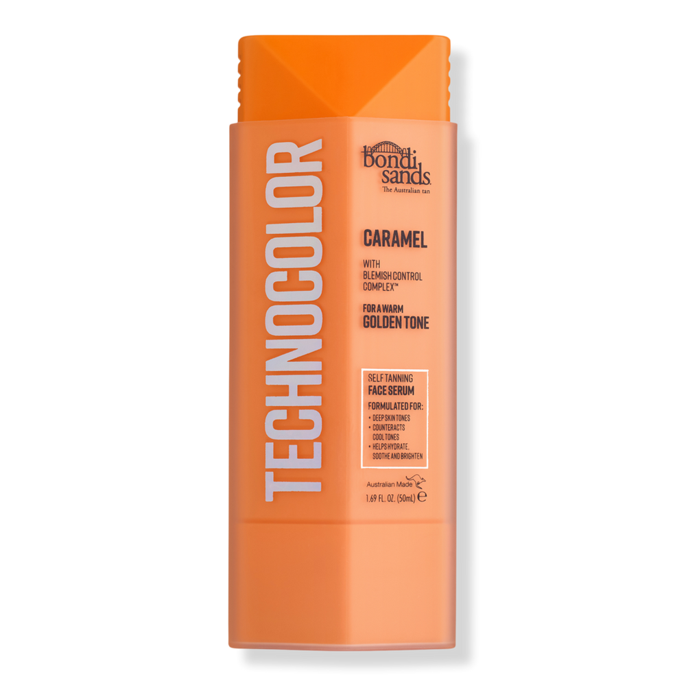 TECHNOCOLOR SELF TNG FACE SRM CARAMEL. Benefits: Dermachromatic Color Technology. Blemish Control Complex. Caramel color enhancers to counteract dryness. Formulated for deep skin tones. Formulated with low-level tanning active ingredients. Suitable for sensitive skin. Clinically proven formulas. Enhanced skin results. Features: Technocolor Caramel Self Tanning Face Serum is perfect for deep skin tones looking to achieve a warm, golden-toned glow. :