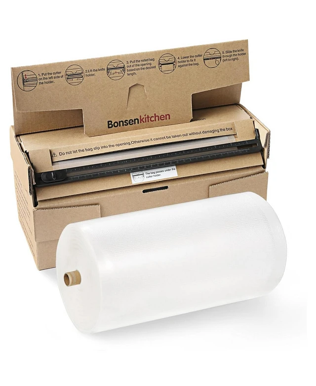 Bonsenkitchen 8” x 150 Food Vacuum Seal Roll Keeper with Cutter, Vacuum Sealer Bags Rolls for Food Storage, Commercial Grade, Bpa Free, Great f