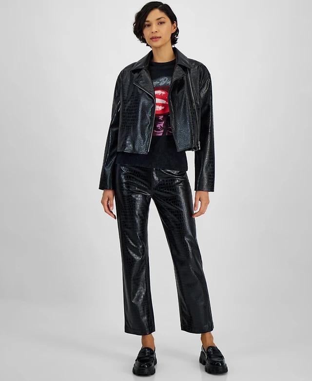 Boss Orange Women's Croc-Embossed Faux-Leather Moto Jacket