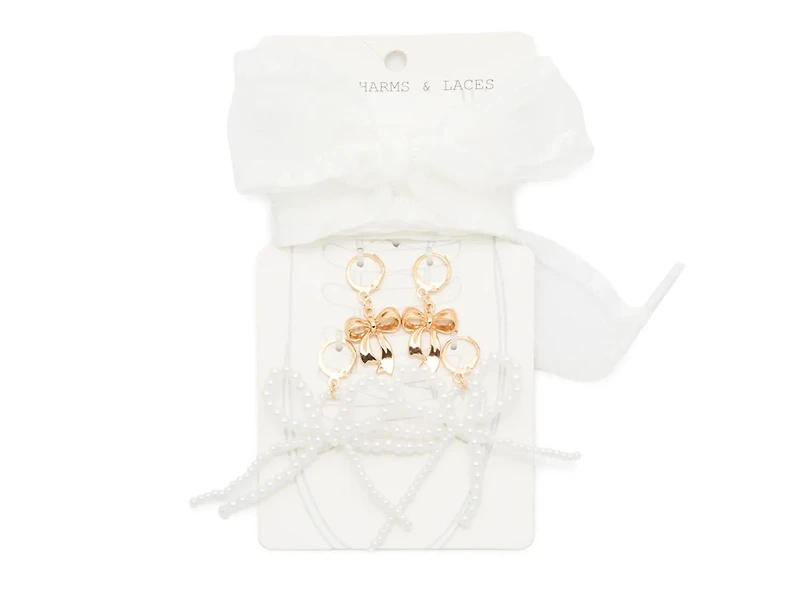 - Includes 1 pair of laces, 2 mini gold bow charms, & 2 imitation pearl bow charms