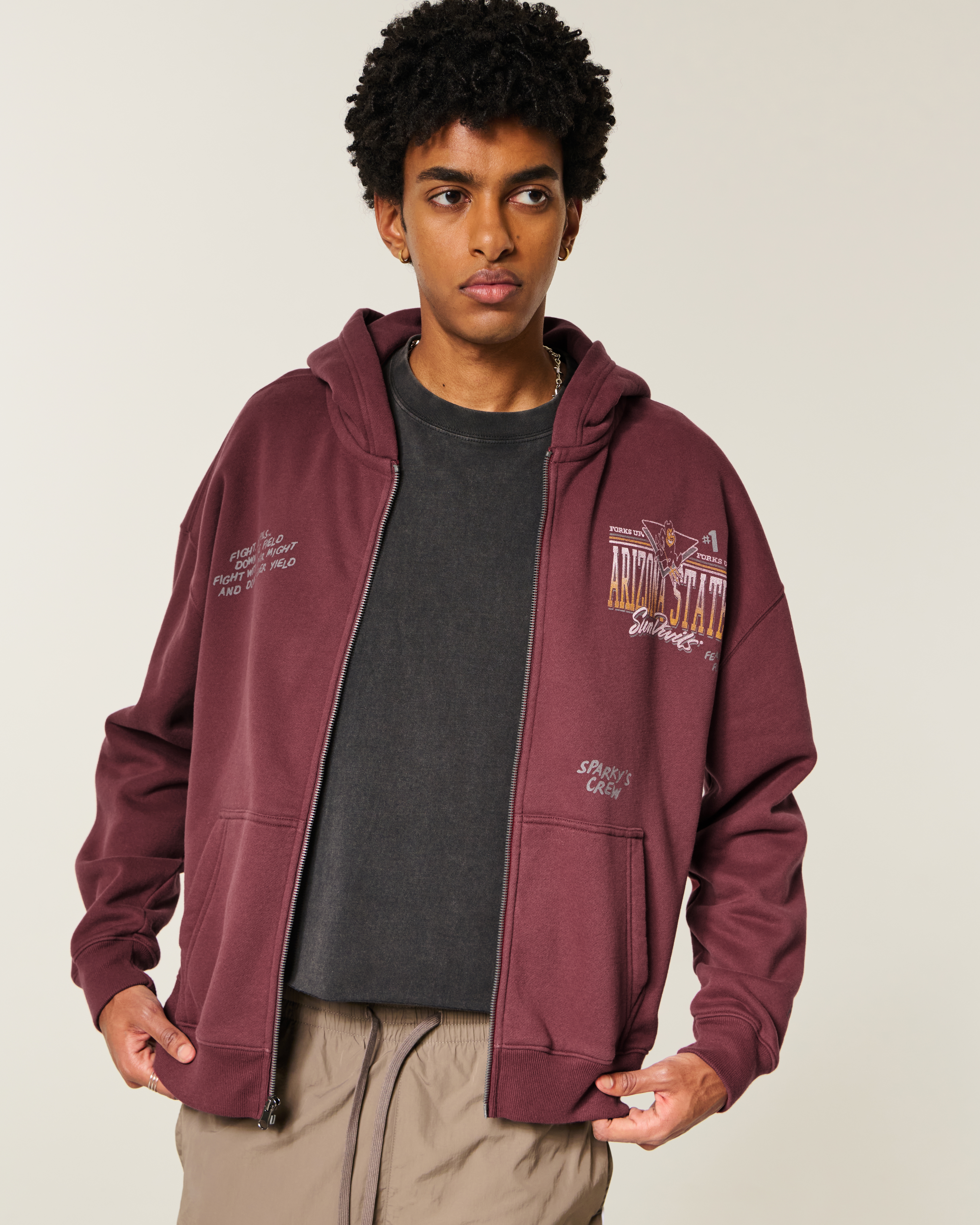 Boxy Zip-Up Arizona State University Sun Devils Graphic Hoodie