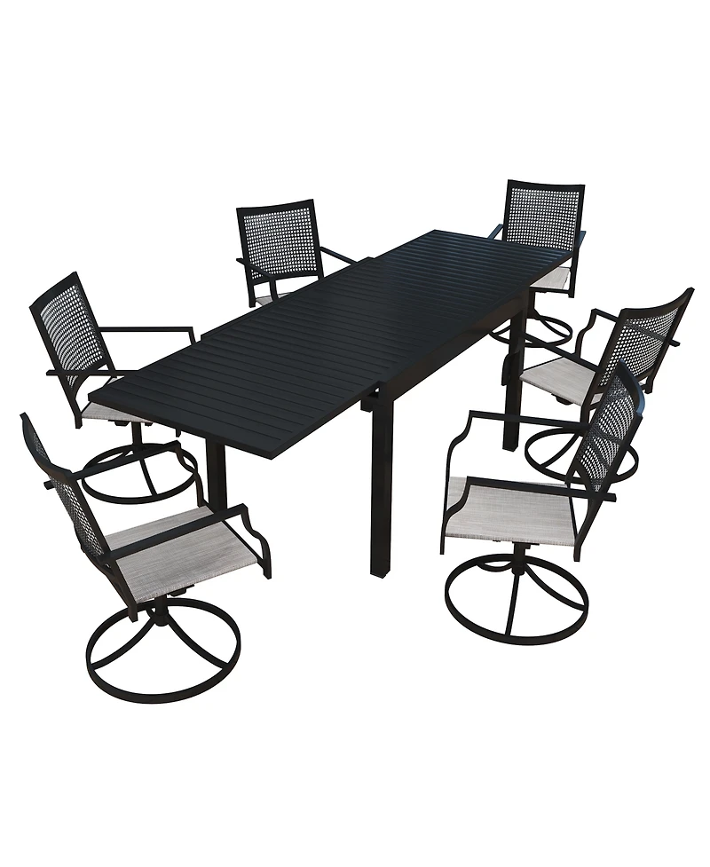 Boyel Living 7-Piece Outdoor Dining Set Aluminum Extendable Table 53"- 106" with Swivel Dining Chair Outdoor Swivel Chairs