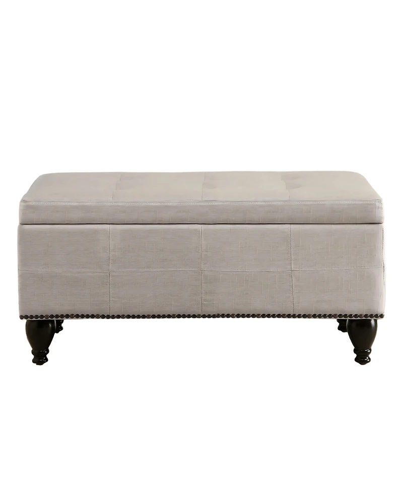 Boyel Living Linen Nailhead Accent Stool with Dark Wooden Legs, Versatile Shoe Bench and Seating