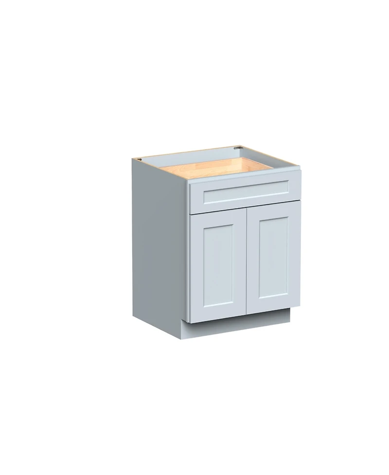 This standard single base cabinet in elegant Dove Grey (W27"" x H34.5"" x D24"") features a durable 5-piece Hdf door and drawer front. Constructed with a 3/4"" solid hardwood frame and 1/2"" plywood box with matching interior veneer. Drawer is crafted with 5/8"" solid wood dovetail construction and 1/2"" plywood bottom. Includes soft-close undermount slides and concealed 6-way adjustable slow-close hinges. Finished with a water-based paint and polyurethane clear coat for lasting beauty. Ideal for custom cabinetry in kitchens or bathrooms.