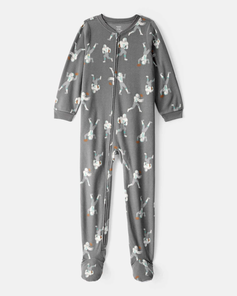 Boys Football Print Loose Fit Long-Sleeve Zip-Up 1-Piece Pajamas