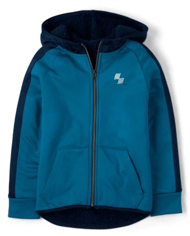 Boys Moisture Wicking Colorblock Fleece Sherpa Lined Zip Up Hoodie