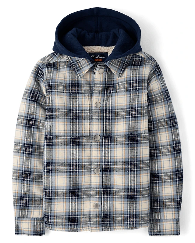 Sherpa-Lined Plaid Shacket for Toddler Boys