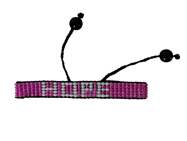 Breast Cancer Awareness Handmade Beaded Bracelet – Pink with White Hope