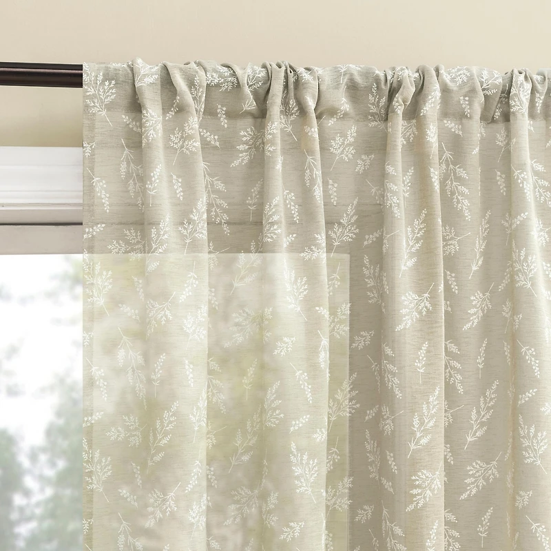 Briarwood Delicate Leaf Textured Sheer Rod Pocket Curtain Panel