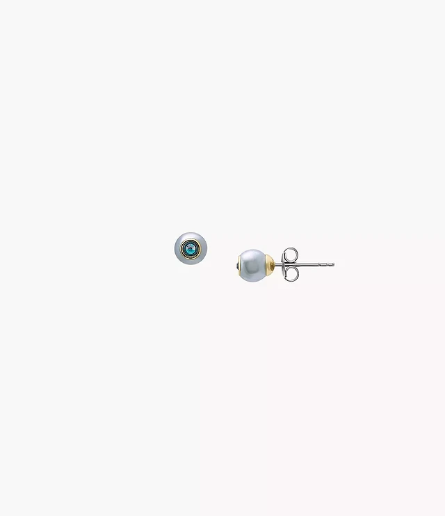 Bright Baubles Blue Shell and Green Rhinestone Stud Earrings