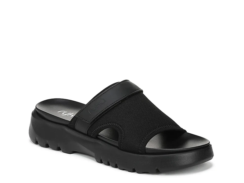 Slide into all-day comfort with the Ryka Brilliant sandal. This slide is designed to conform to your foot shape to add support to each step. Adjustable straps ensure a secure fit, while the ACTIVfoam EVA sole provides soft cushioning and flexibility.