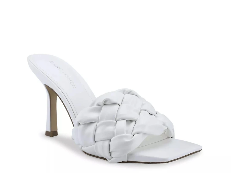 Slide into elegance with the Brizo sandal from Marc Fisher. This pair features a thick braided strap, squared off toe, and towering heel to make a stylish statement.