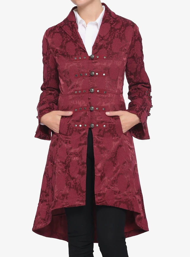 Brocade Corset Back Coat Burgundy