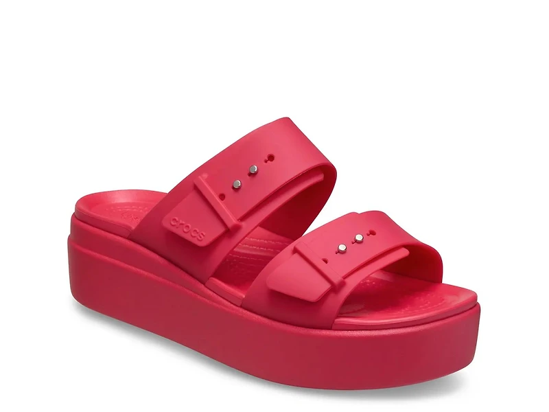 Enjoy the comfort of Crocs and the style of your favorite wedges with the Brooklyn Low sandals. Crafted with a contoured footbed with massaging nubs so you can feel your best all day long. These wedges sit on top of a platform and feature a double strap design for a casually cool look.