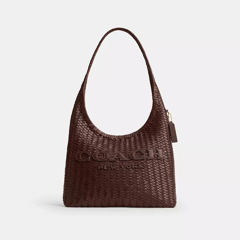 Our Brooklyn is an elegant, minimalist silhouette—with a distinctly New York attitude. Crafted of soft leather intricately woven by hand in a process that takes over 27 hours to complete, this mid-sized hobo style features a roomy interior with a snap pocket for access to essentials. The streamlined 34 is finished with a comfortable, wide shoulder strap, an easy magnetic snap closure and our tonal Coach graphic.